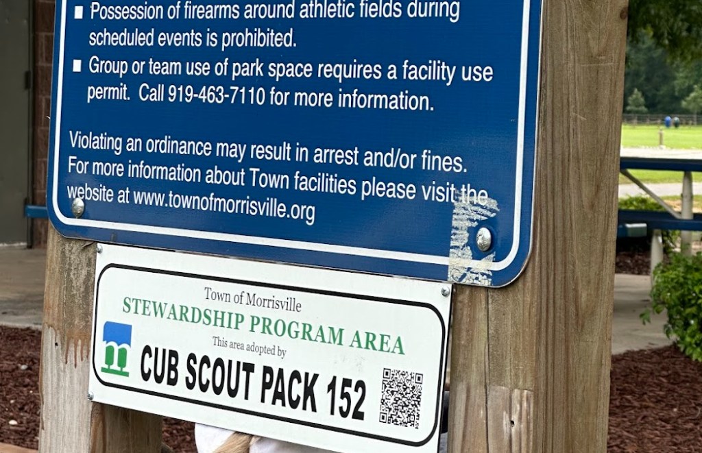 Pack 152 does a quarterly litter pick up at a local park. Our pack has ‘adopted’ the Cedar Fork District Park, which routinely hosts community activities, soccer games, and is an active hiking/biking trail.